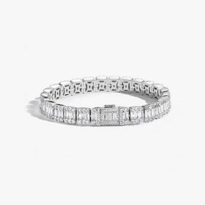 Introducing the 8mm Clustered Tennis Bracelet ! This bracelet features bold centered stones surrounded by smaller accent stones in tow, which looks like dancing on your wrist. Finished with our signature TYG clasp, wear this day and night with the matching Clustered Tennis Chain for the perfect matching set.