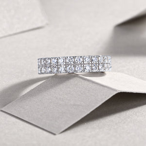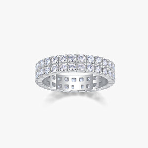 Unleash your inner risk-taker with the Moissanite Balance Double Row Iced Ring! Made with stunning moissanite stones, this ring balances luxury and boldness. Illuminate any room with this daring piece that is sure to add an extra touch of adventure to any outfit. Go ahead, take the chance.