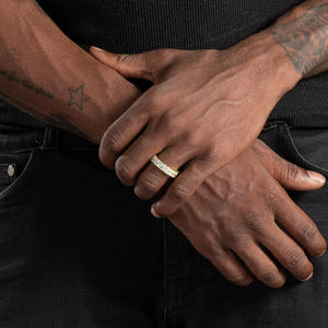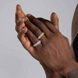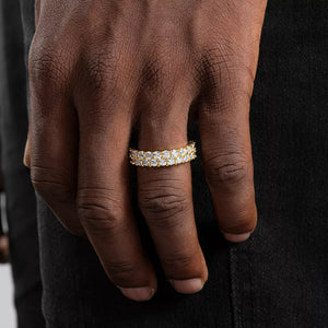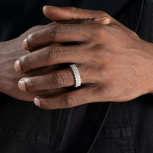 This stunning ring features a double row of sparkling moissanite gems that wrap around the entire band, giving you a truly dazzling eternity ring. Perfect for any occasion, this 6mm ring will add a touch of elegance and glamour to your everyday look. Make a statement with the Moissanite Double Row Iced Eternity Ring.