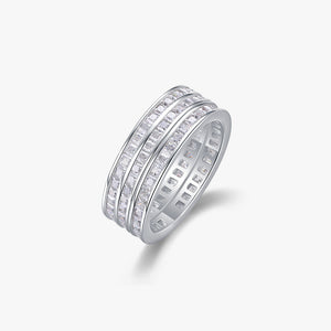 Indulge in luxury with our Separable Three Row Moissanite Baguette Cut Ring. This stunning piece surrounded by three rows of baguette cut stones. Effortlessly elegant, this ring can be separated into three individual bands for a versatile and sophisticated look. Elevate your style with this exclusive and timeless piece.