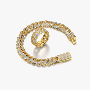 【New】 10mm Iced Out Cuban Bracelet & Cuban Link Ring Set