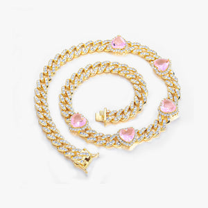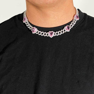 Pink Heart Cuban Link Chain - 10mm