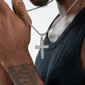 Introducing our exquisite Tennis Cross Pendant - the epitome of sophistication and contemporary design. With round cut stones that glimmer in the light, this pendant adds a touch of playfulness to any outfit. Perfect for elevating your style for any occasion. Whether you're dressing up for a special event or simply want to add some sparkle to your everyday look, this pendant is sure to impress.